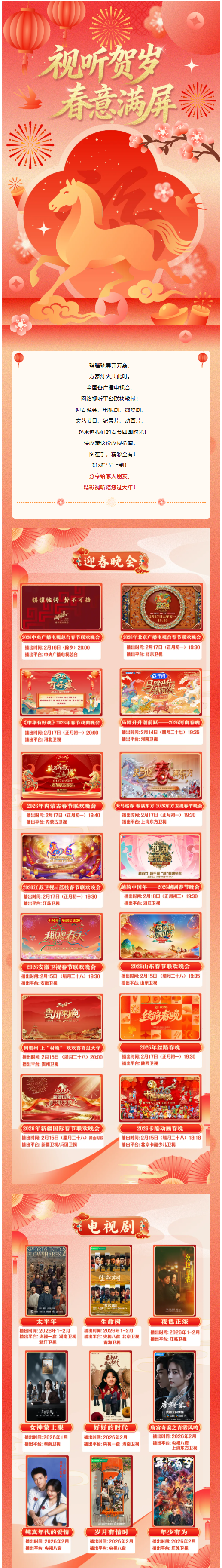 2026新春精品视听节目片单,收藏转发,欢乐共享